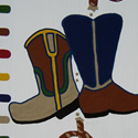 This growth chart is handpainted with an assortment of hats, boots, spurs, rope, and stars...and of course the "cowboy's" name! Saddle up, partner, for some Western fun!